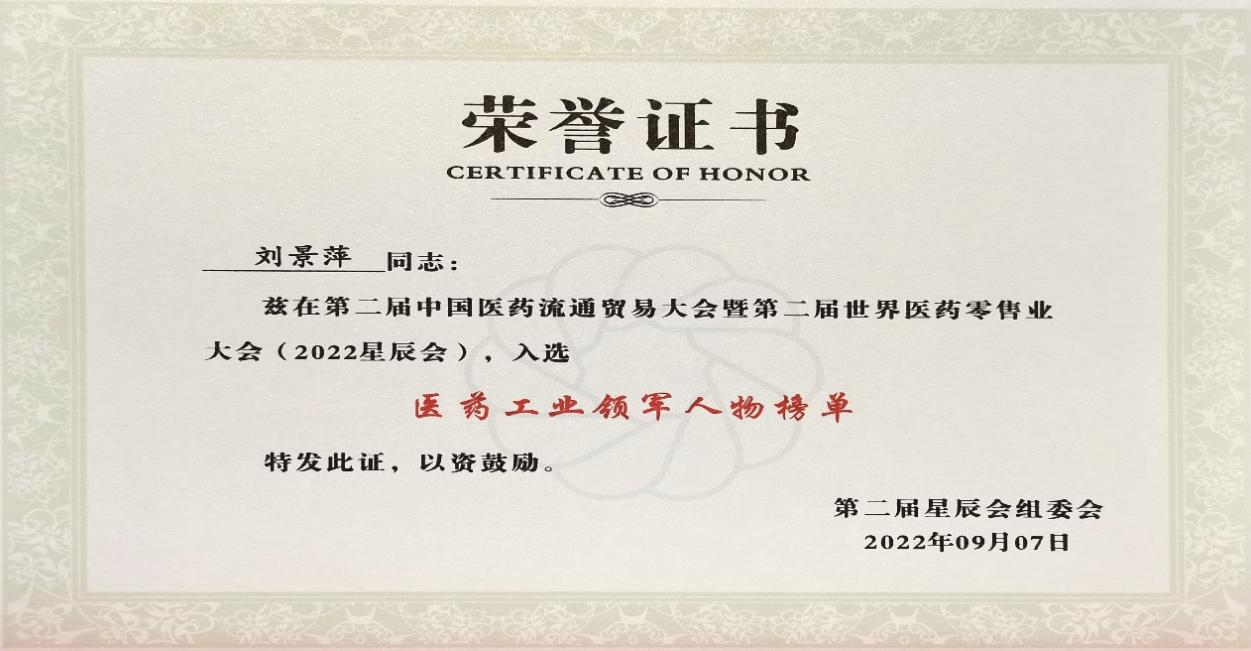 在本次开幕式上,发布了“医药工业领军人物”、“医药零售领军人物”榜单,z6尊龙药业集团刘景萍董事长凭借在儿药领域多年的努力探索和对行业的杰出贡献,荣获“医药工业领军人物”称号。